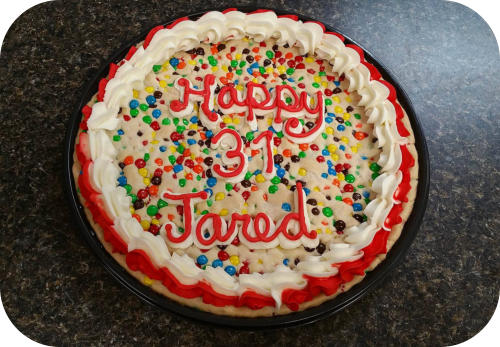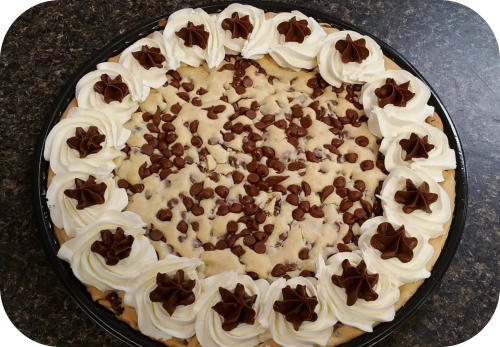 We now offer 12” Round Cookie Cakes for your enjoyment. We bake fresh using our own cookie recipe available in Chocolate Chip, M&M, Funfetti, Sugar, Lemon Glazed, Reese’s Pieces, and Glazed Strawberry… we can customize your cake with your colors and message. We have a limited amount of ones available daily but you can pre-order your own 48hrs in advance.